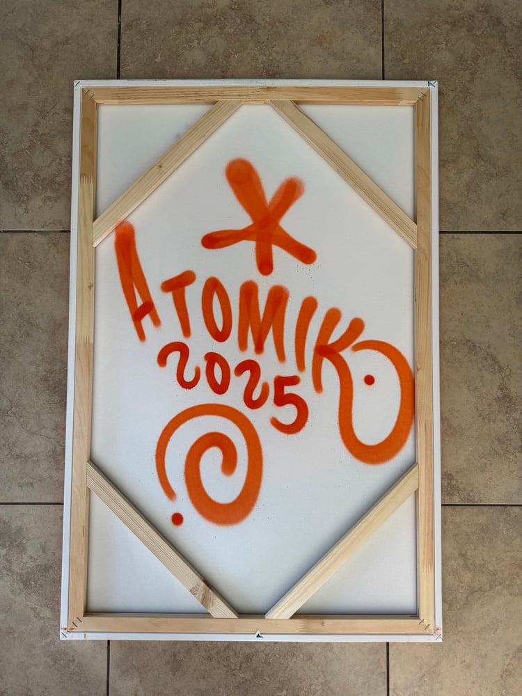 hand painted. original. aerosol acrylic on canvas. 36” x 24”. ships rolled with stickers!