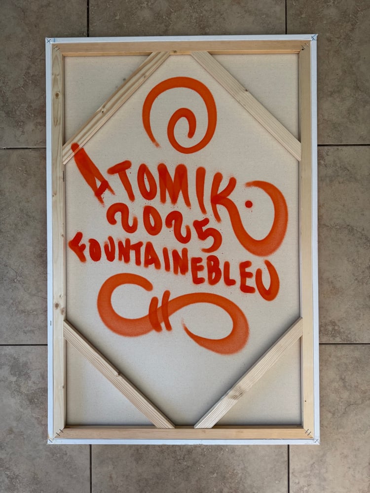 hand painted. original. aerosol acrylic on canvas. 36” x 24”. ships rolled with stickers!