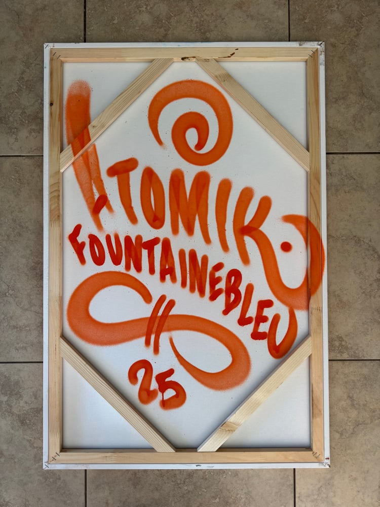 hand painted. original. aerosol acrylic on canvas. 36” x 24”. ships rolled with stickers!