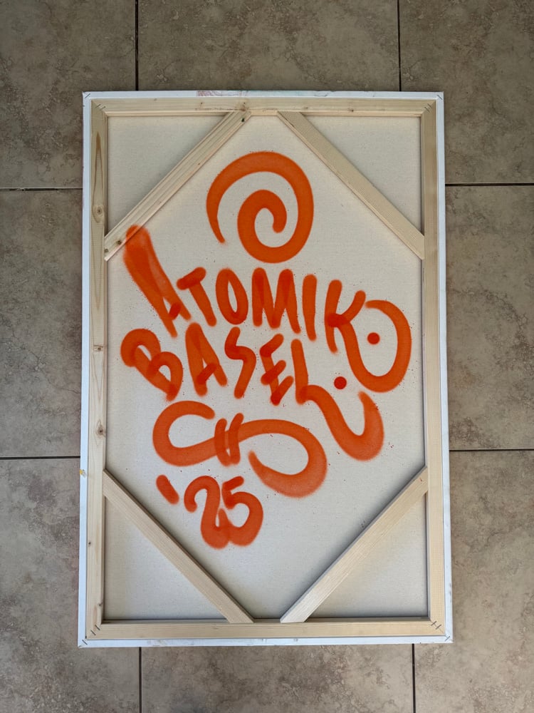hand painted. original. aerosol acrylic on canvas. 36” x 24”. ships rolled with stickers!