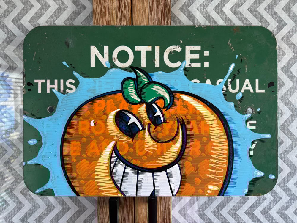 hand painted original street sign. 12” x 18” x .25” acrylic marker on metal. ships with stickers!