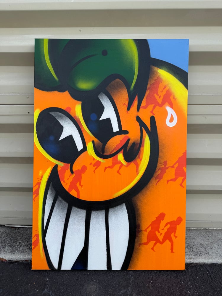 hand painted collaboration with OG DREW spray paint on canvas 24” x 36” ships rolled w/ stickers!